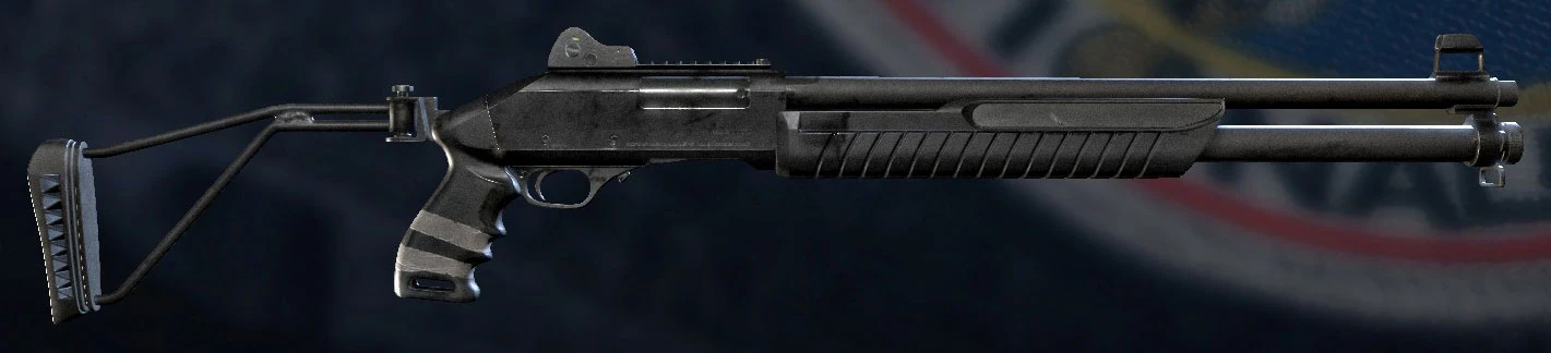 - "Fusil à pompe compact de calibre 12 à la puissance d'arrêt élevée à courte portée. Apprécié du GIGN."