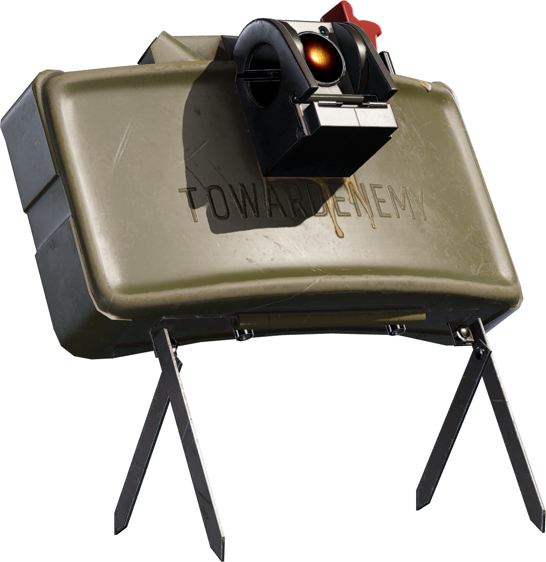 This is a remotely detonated anti-personnel mine. You can place this device anywhere on the ground and detonate it from anywhere in the map. It functions similarly to a frag grenade, but with the blast only going in the frontal hemisphere (+/- 75 degrees from center). This item can be destroyed.