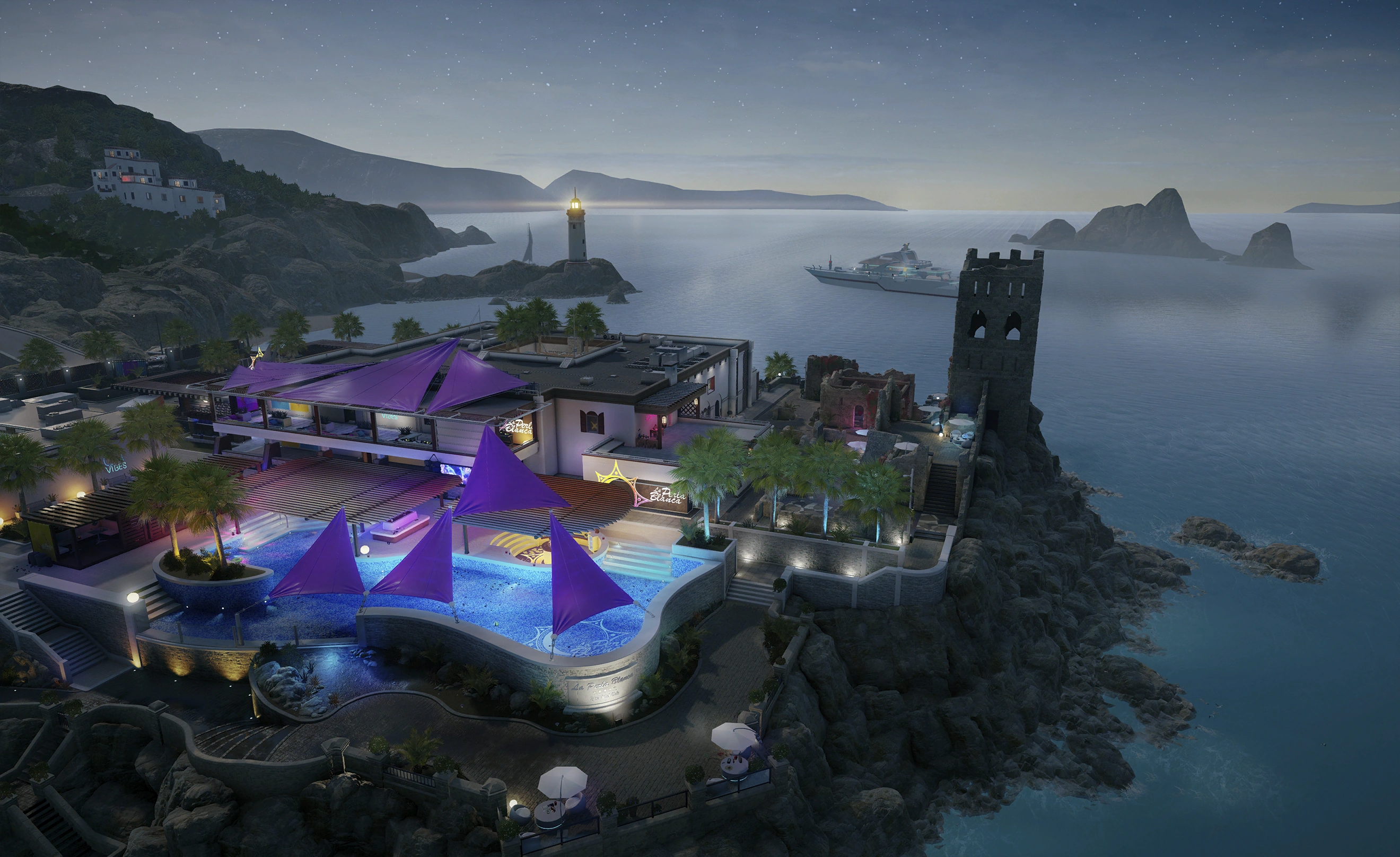 - In the night version of the map, music could be heard coming from the speakers near the outside pool. There are four songs that could be heard, all of which were licensed songs. The four songs were Disco Flash by Laurent Lombard, Ibiza Beach Party by Jay Michaels, Balearic People by Aaron Wheeler, and Fresh Love by Richard Searle. However, the night version was later removed from ranked and casual but could still be played in custom matches until they were completely removed from the game.