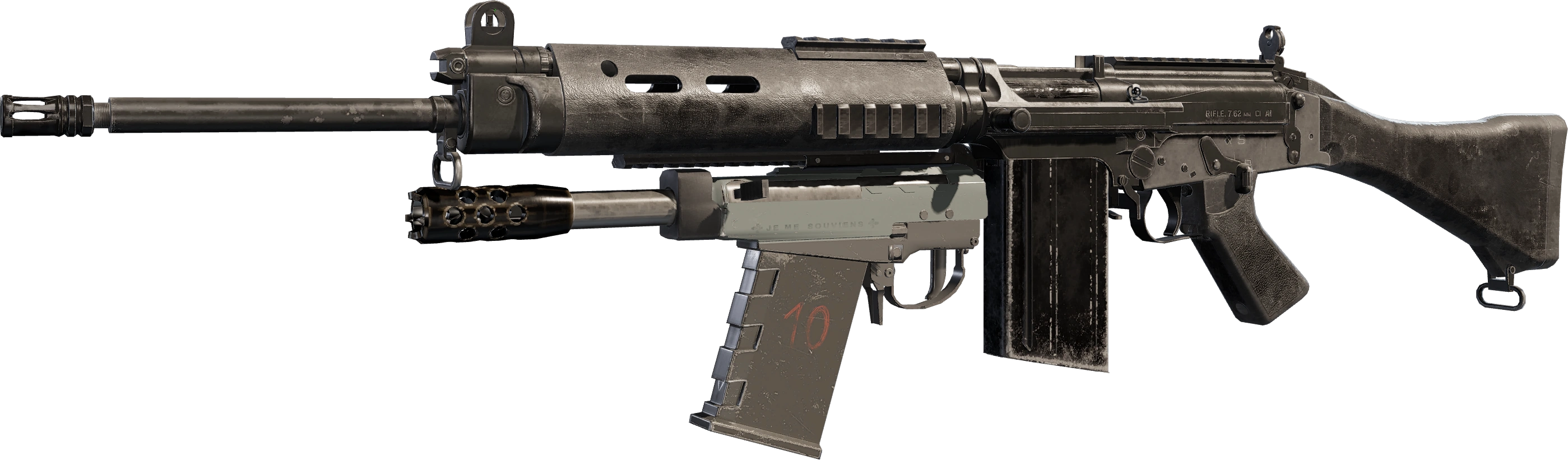 The L1A1 Self-Loading Rifle, officially Rifle, 7.62mm, L1A1, also known by the Canadian Army designation C1A1 is a a British Commonwealth derivative of the Belgian FN FAL. The main differences of this variant includes a rotating disc rear sight for 600 yards, a two-piece firing pin, and a shorter receiver cover than other Commonwealth variants to allow for refilling the magazine by charging it with stripper clips.