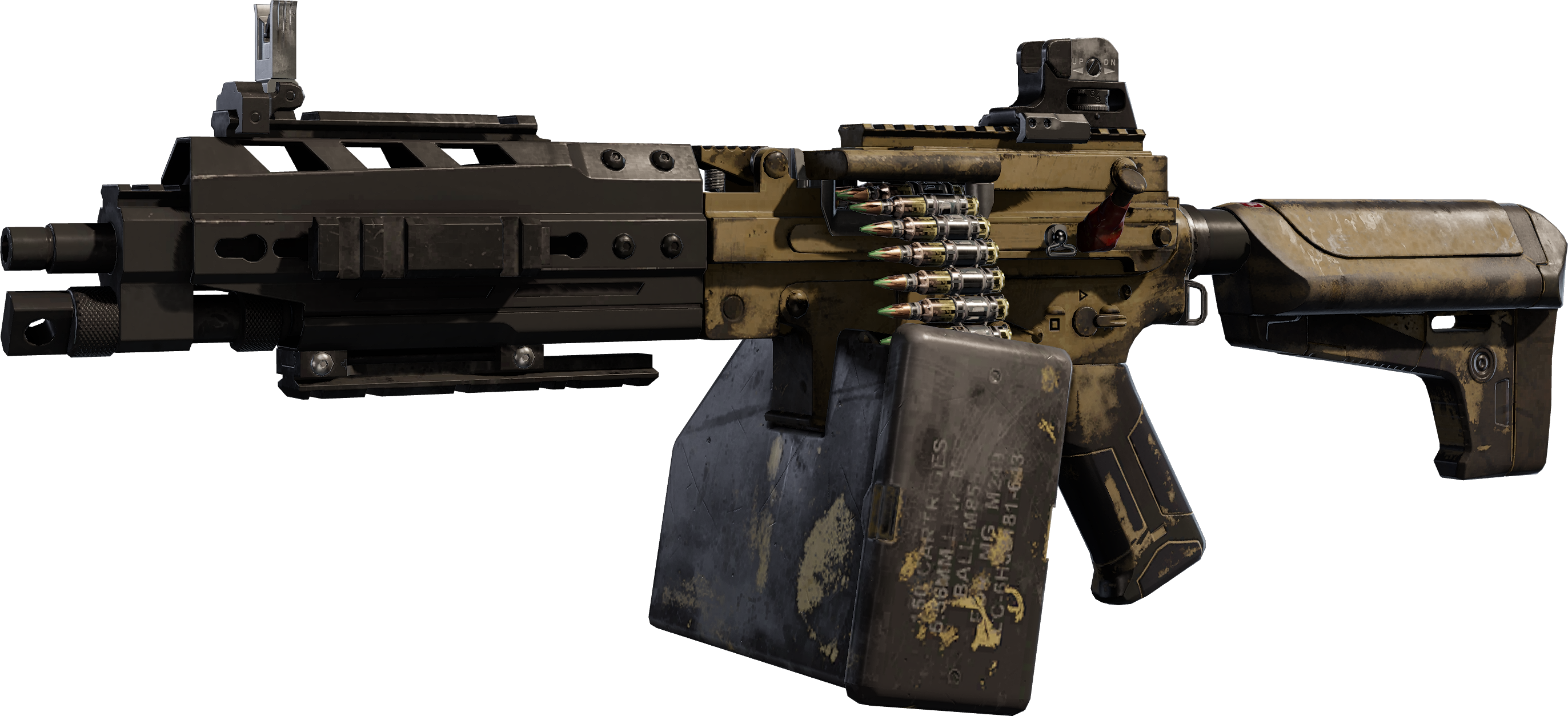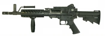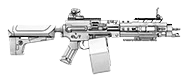 - "Compact package belt-fed AR, with a 150 round box. Lays down a fierce medium-range suppressive fire."