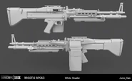 The M60E4 MK43 is a weapon cut from Tom Clancy's Rainbow Six Siege. This was confirmed by Ubisoft Chengdu weapon artist Juno Han.[1]