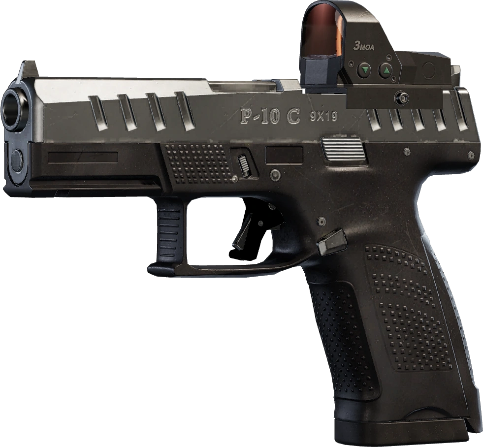 In-game, the P-10C includes an integrated red dot sight to assist with target acquisition. Recoil is easily manageable, but the damage is dreadful and hip fire spread are worse compared to other handguns even with the help of Laser Sight. Currently, only the RG15 possesses a lower damage rating but with the better hip fire spread.