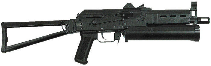 The PP-19 Bizon, also known as just the Bizon, is a straight blowback closed bolt submachine gun developed in 1993 by Victor Kalashnikov that fires the 9x18mm Makarov or 9x19 Parabellum round. It features a 53(Parabellum) or 64(Makarov) round helical magazine attached to the underside of the weapon. The PP-19 Bizon directly lead to the eventual design of the 9×19VSN submachine gun.