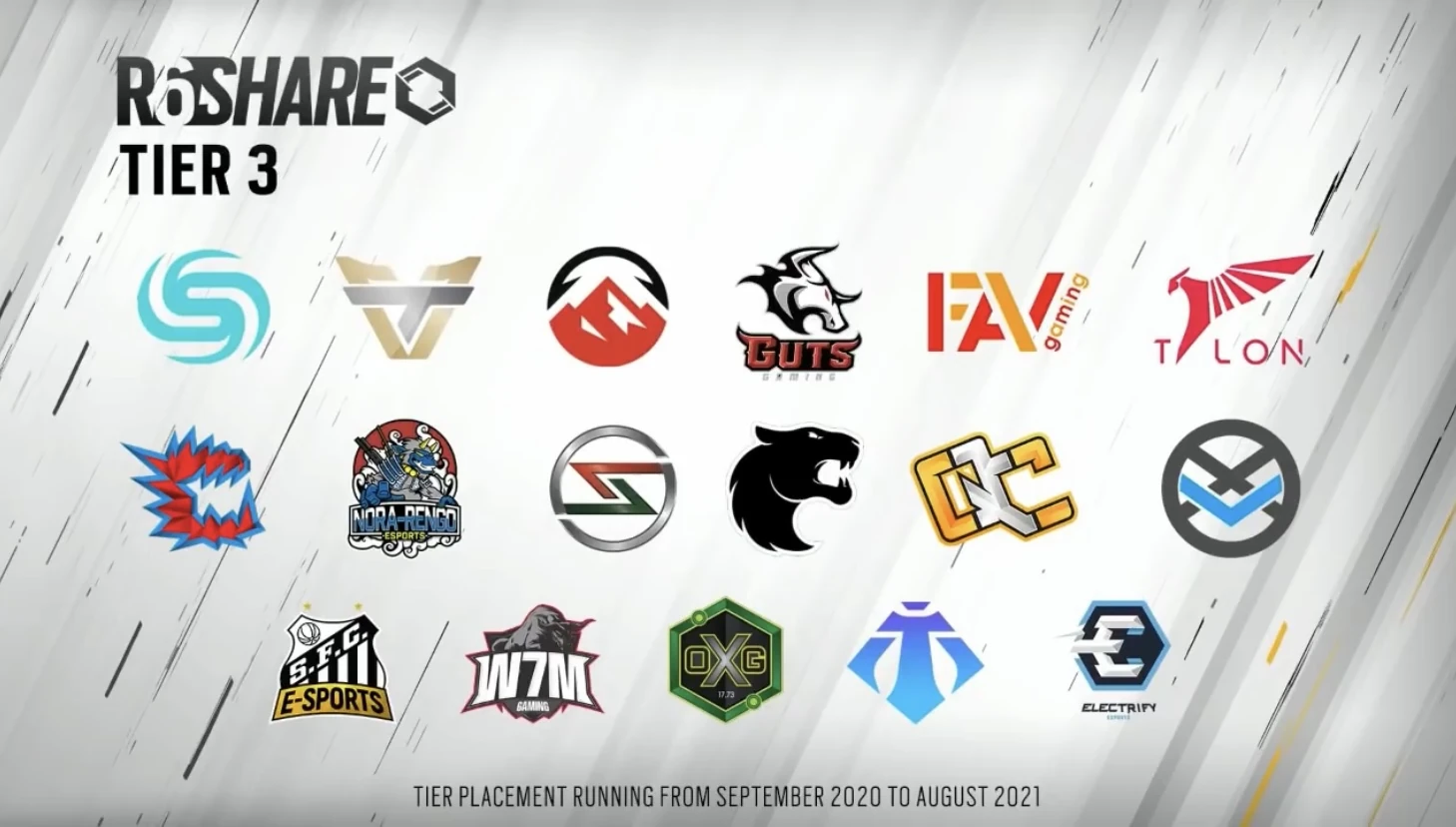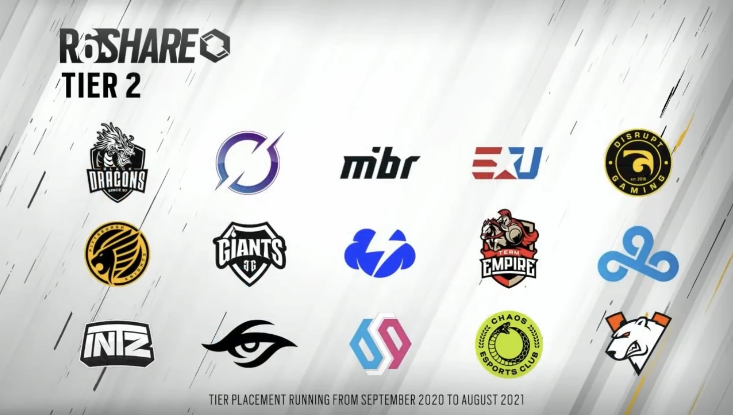 - ↑ https://www.ubisoft.com/en-us/esports/rainbow-six/siege/news-updates/2AaBGZVkv2RoahRCNpCl44/unveiling-the-42-selected-teams-and-r6-share-tier-placements