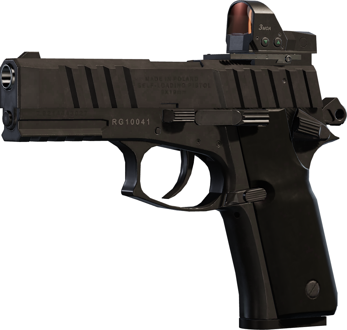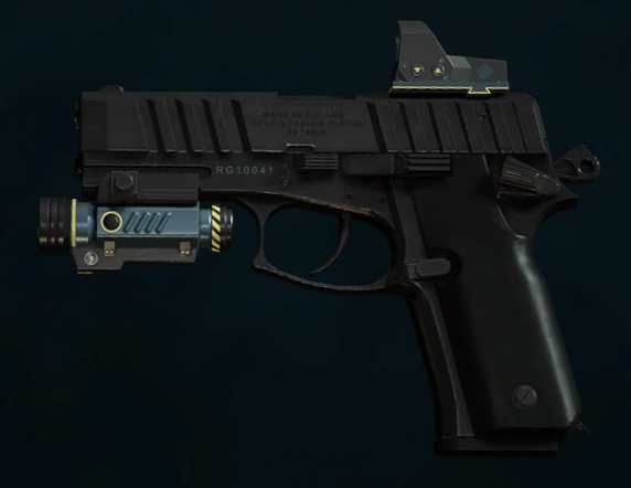 “ Customized 9mm semi-automatic handgun, equipped with a Romeo1 Reflex. - In-game description”