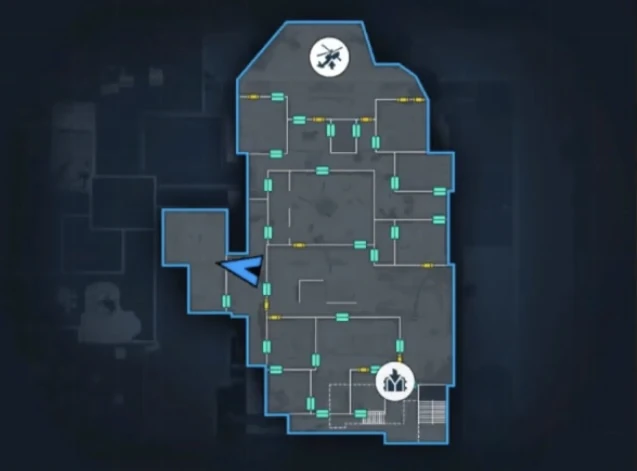 Central open area, look at the crashed helicopter in the middle of the area.