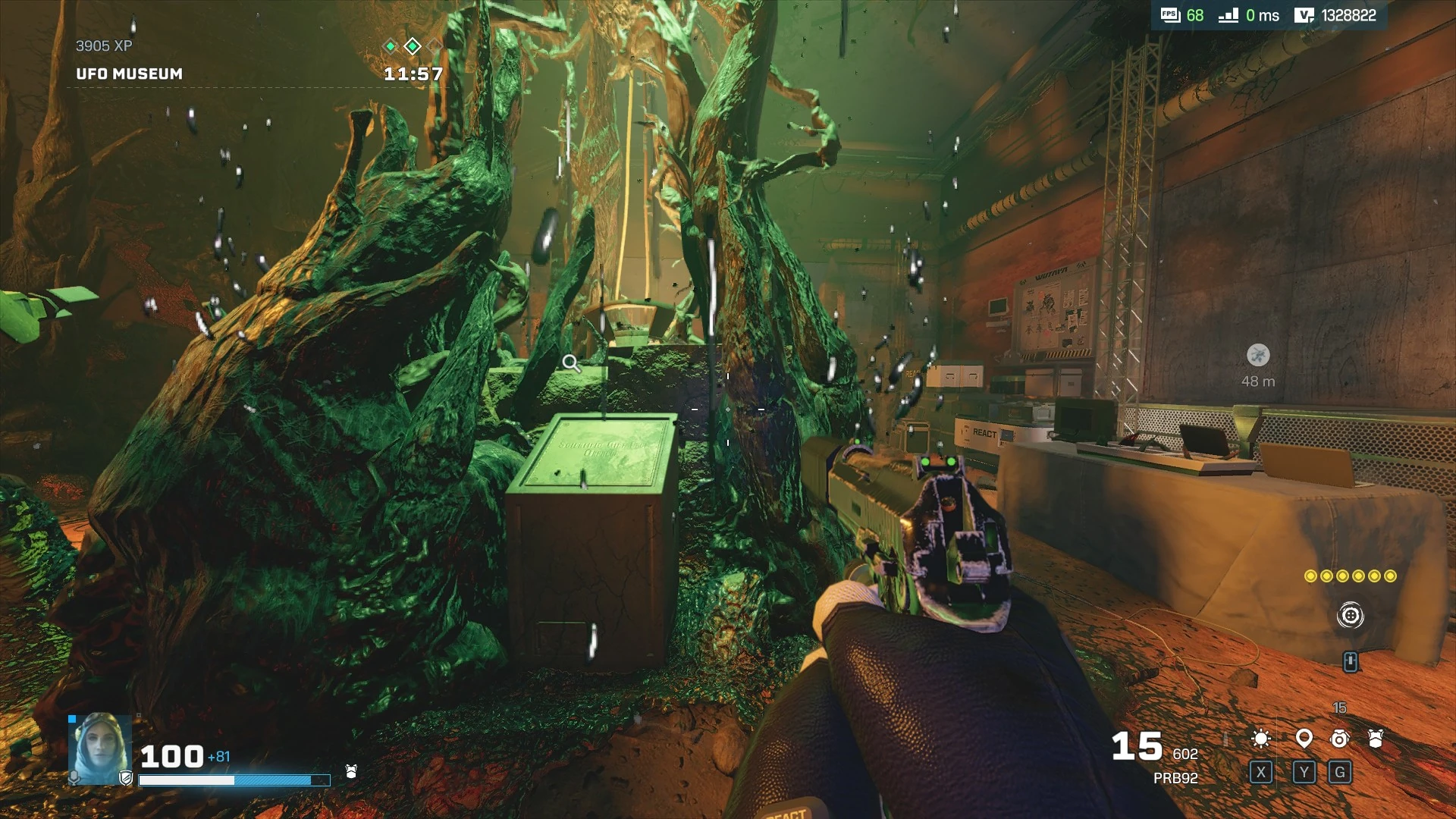 Grey containers on north wall of the Airlock between Punk Club and UFO Museum.