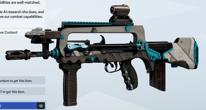 Wolfguard Tech F2 Weapon Skin "Twitch and I haven't had many opportunities to work together so far, but our capabilities are well-matched. I'd like to hear more about this AI research she does, and how we could use it to improve our combat capabilities." - Ying | |