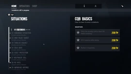 Situations are a series of eleven different tutorial missions that task players with completing various scenarios. Each Situation is played on a specific map with a specific Operator. This gives players a basic introduction to several Operators and maps. It should be noted that several Situations are played on the original versions of maps prior to their rework such as Hereford Base.